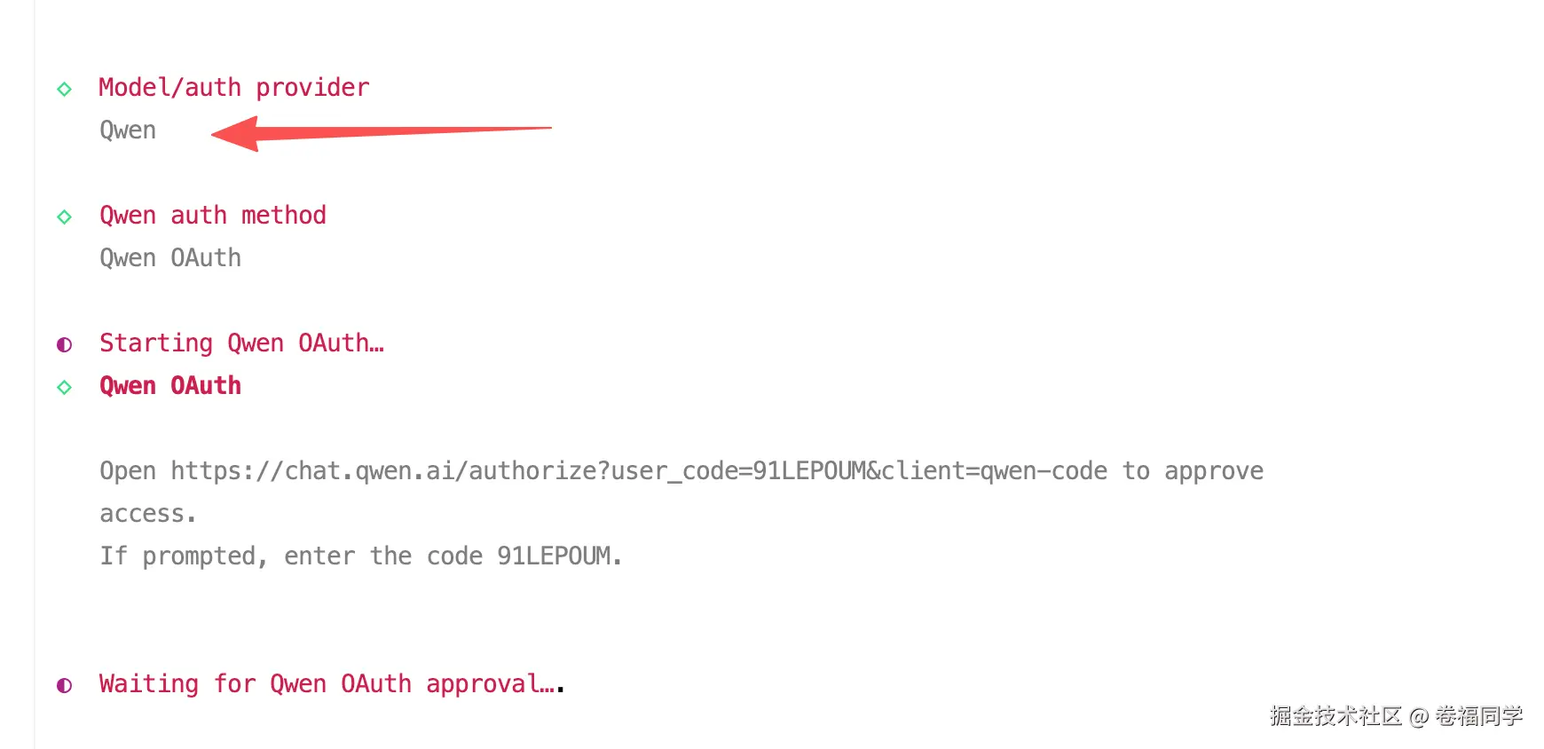 根据提示信息选择你要用的模型,这里小卷使用的Qwen,然后将下面提示的地址拷贝出来,在浏览器打开,登录千问就行了