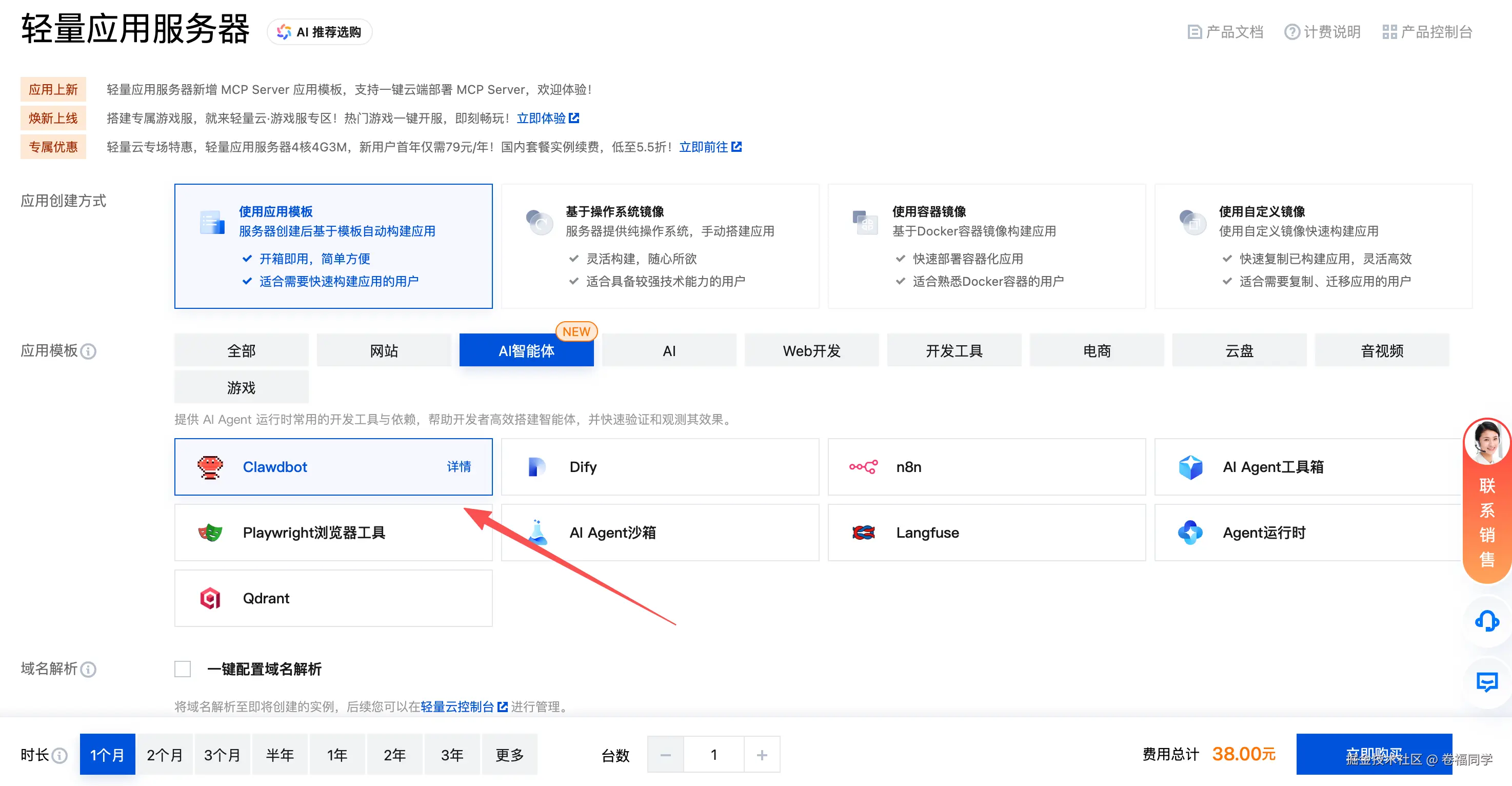 我们需要准备一台非国内的服务器,不得不说腾讯的速度真是快,直接就上线了Clawdbot的云服务器,一个月38元吧,想体验Clawdbot又不想用自己的Mac部署的友友,可以直接冲了