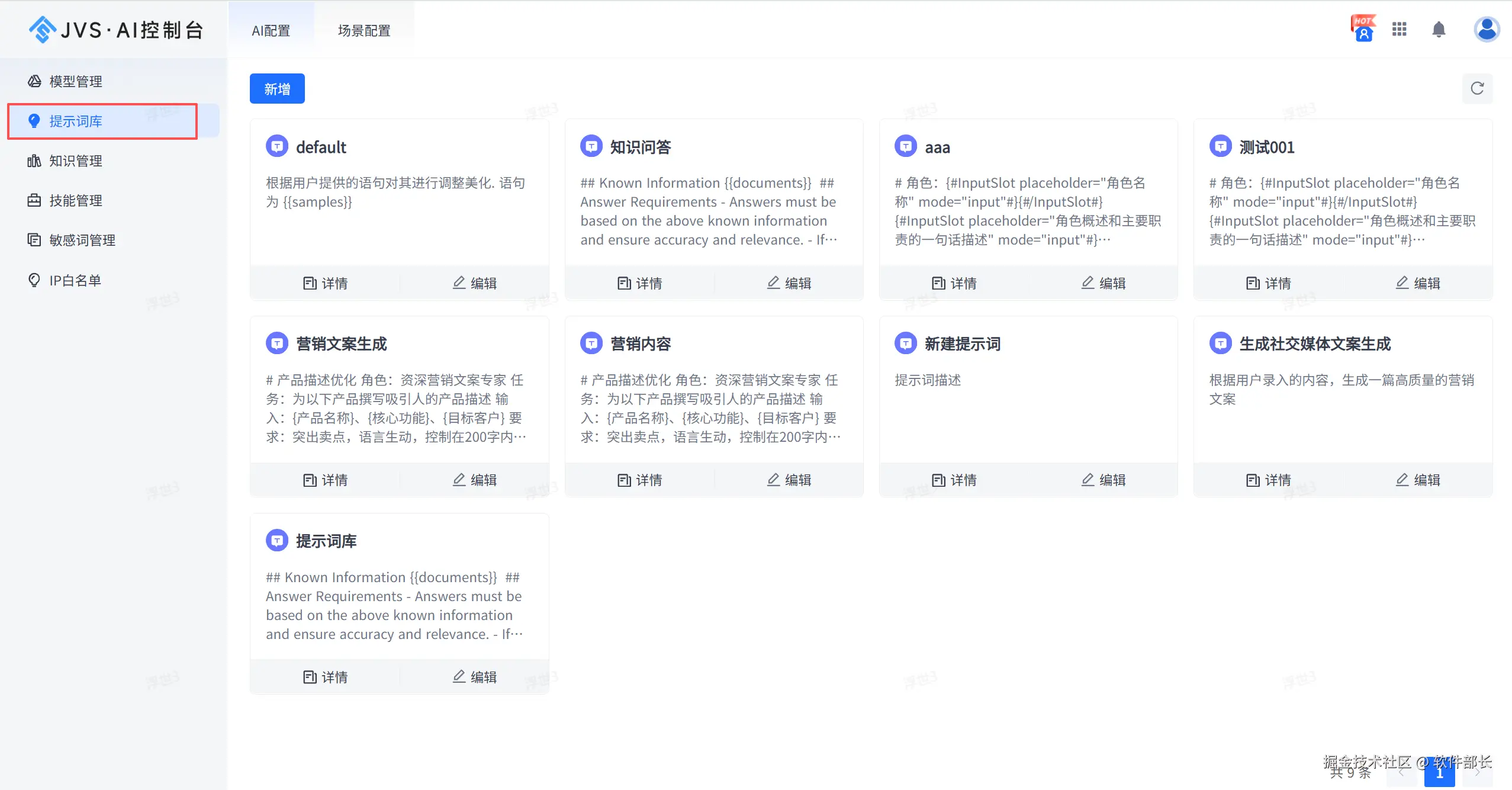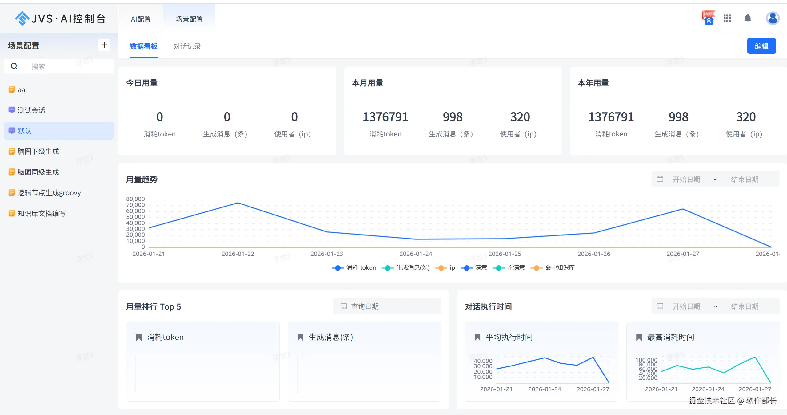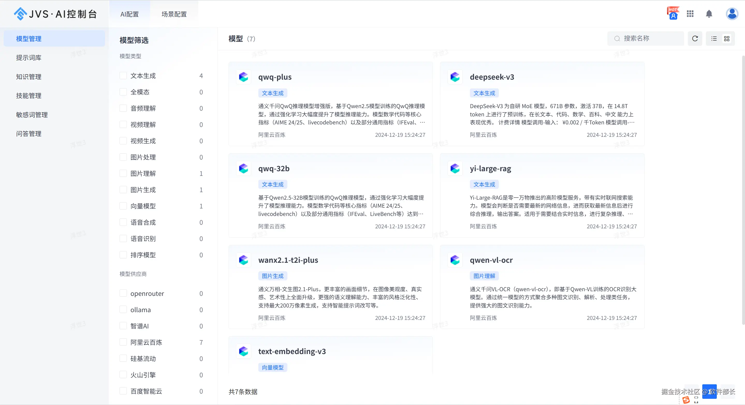 JVS-AI 是企业级AI快速落地的工具集合,其中包括模型的接入、生成内容的约束、多场景的构建(会话、内容生成、辅助设计)、多种知识接入、技能的受控使用、思维链构造、智能构建执行计划等,是一系列AI落地的工具套件。