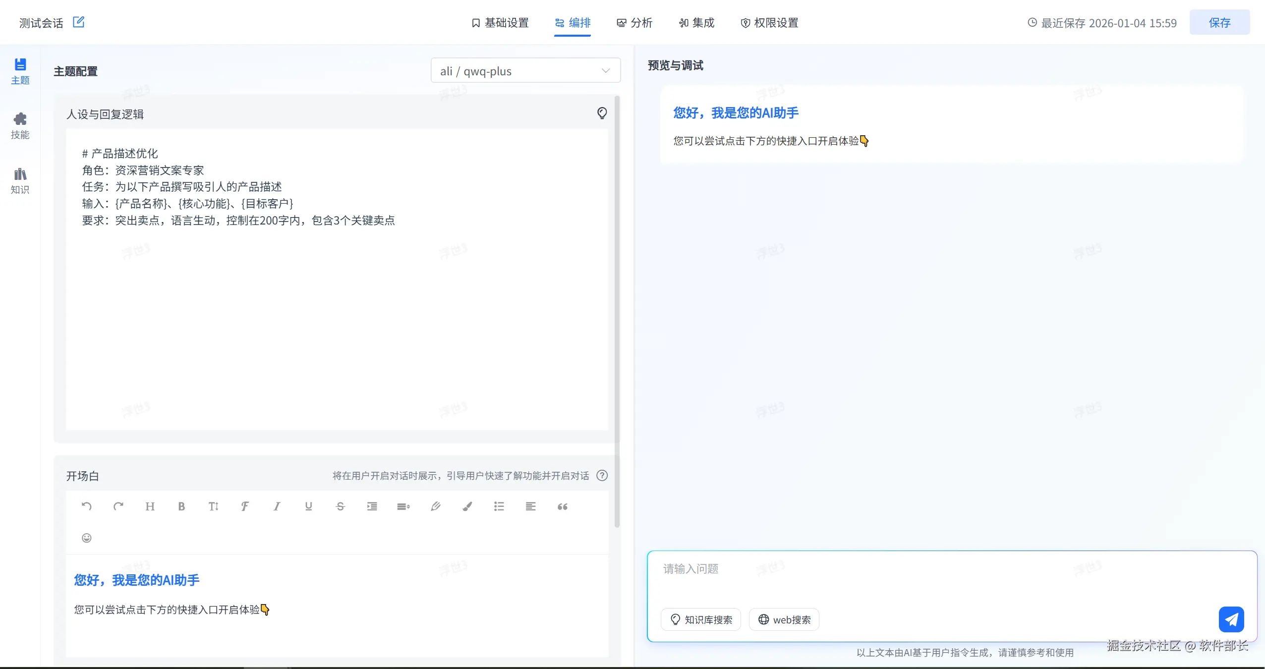 - 低代码/无代码应用构建:通过可视化的工作流设计器、对话流程编排工具和知识库管理界面,业务分析师、运营人员等非技术人员也能自主配置和优化AI应用,大幅降低对IT和AI专家的依赖。