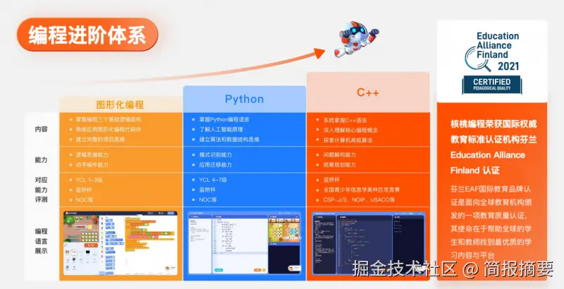 人工智能时代,具备编程能力更突出的孩子才能成为时代的宠儿。00后、10后们是人工智能时代原住民,编程是他们创造未来世界的重要工具,也是解锁智慧生活的数字密码。