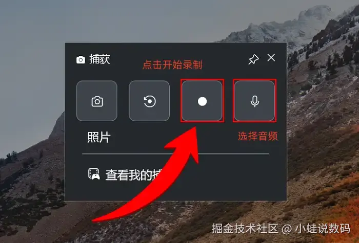 - Win10及以上:按 【Win+G】 调出Xbox Game Bar,点击中间圆点即可捕获屏幕;