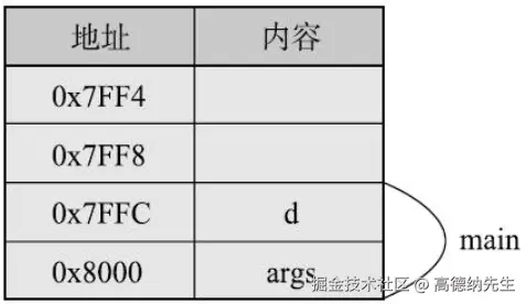 sum之前会为形参args和局部变量d在栈里分配内存,如图1-1。 - 函数