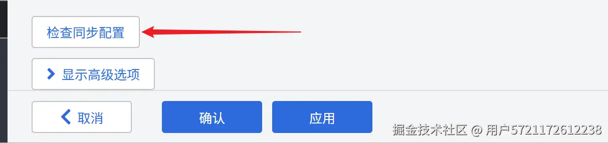 往下拉,点击检查同步配置,提示没问题,就可以点击“应用”、“确定”了。