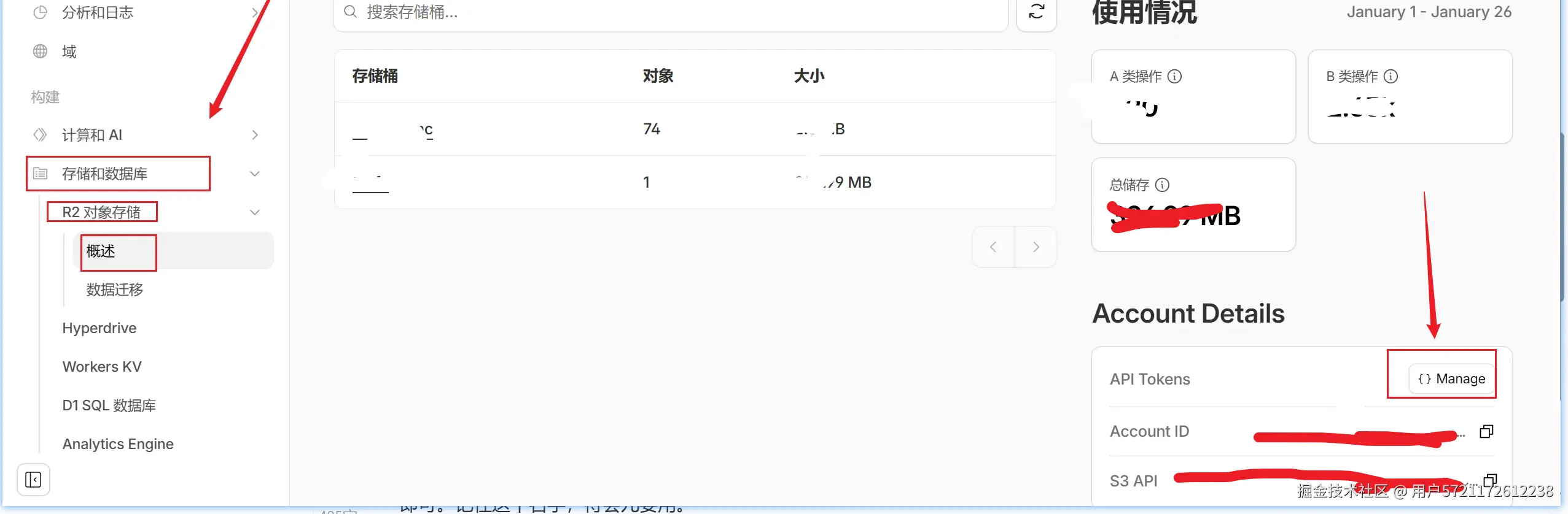 然后选择 存储和数据库--> R2对象存储-->概述-->创建存储库