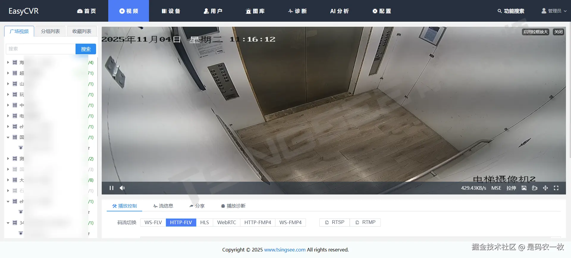 电梯安全无小事,智能化监管是行业发展的必然趋势。EasyCVR平台凭借其强大的多协议接入、智能分析、统一管理能力,为电梯监管提供了从设备接入到数据应用的全链路解决方案,有效破解了传统模式的诸多痛点,推动电梯监管向精细化、智能化、主动化升级。