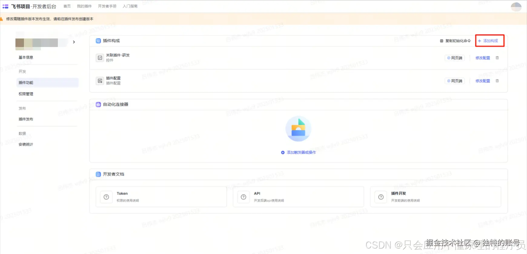 根据需求在开放平台配置的插件功能里添加构成,例如: