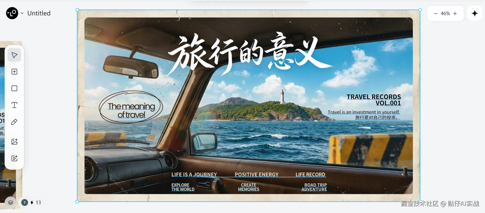 创客贴AI则更偏向真实设计场景,生成的不是单张图片,而是可直接编辑的工程文件,文字分层精准、可无缝进入画布继续修改,并且配套可商用素材和字体,更适合运营、设计和自媒体用户将 AI 生成结果直接落地使用。
