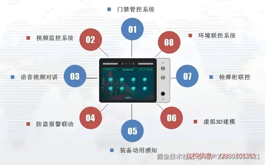 系统整合门禁管控、视频监控、语音视频对讲、防盗报警联动、装备动用感知、枪弹柜联控、环境联控 八大核心模块,覆盖营区库室管理全场景,实现 “管人员、管物资、管环境、管安全” 的全方位管控: