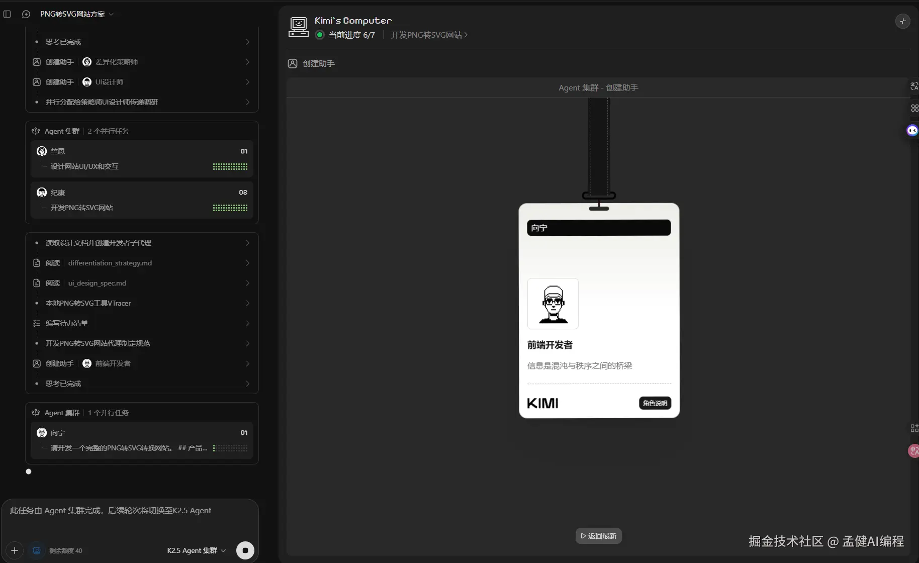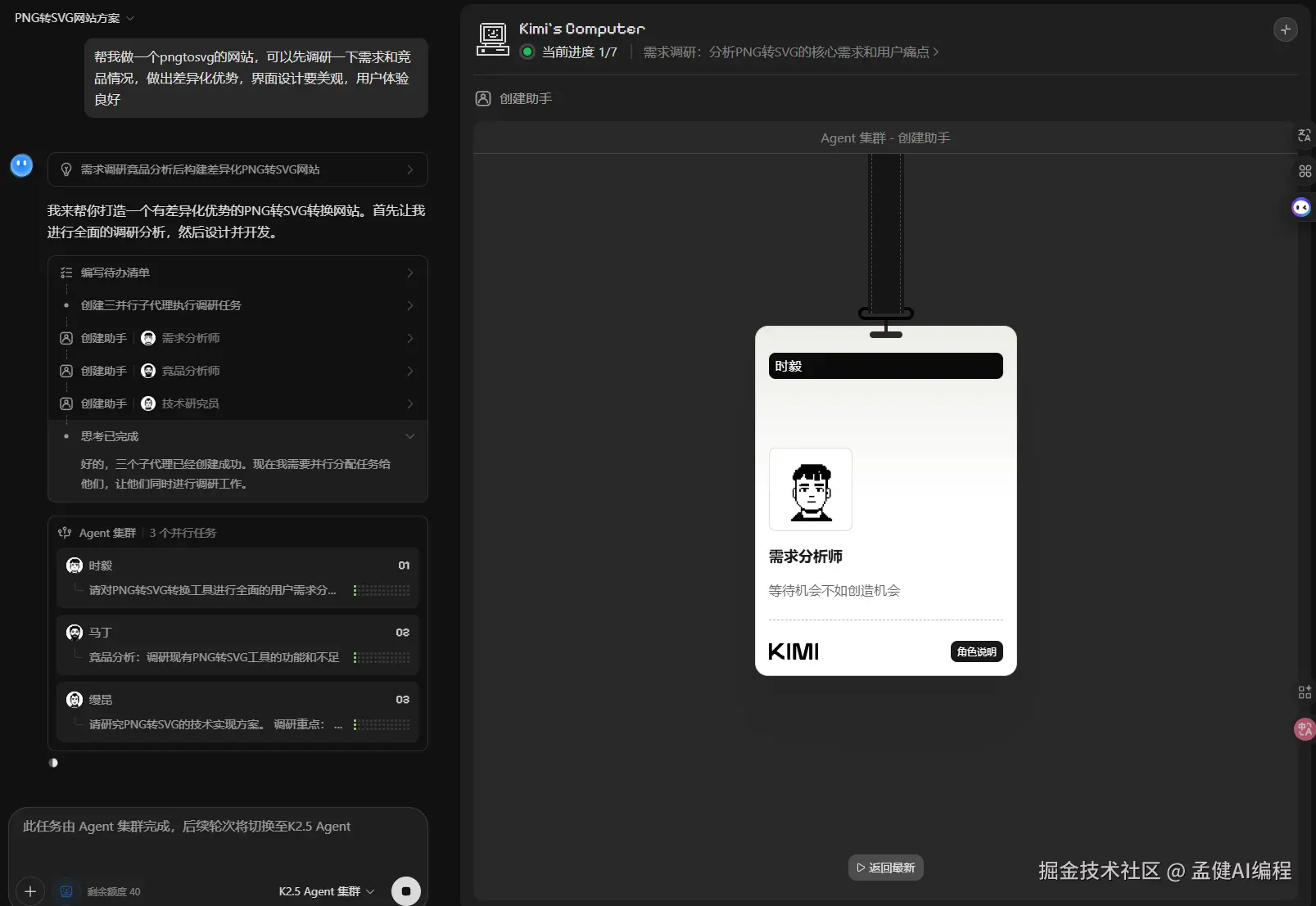 我最感兴趣的是它的 Agent 集群功能,今天迫不及待地测试了一下,分享给大家。