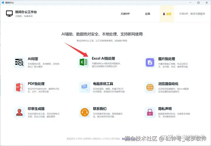 这是一个专业解决excel多文件处理的方案, 主界面上找到 Excel AI批处理