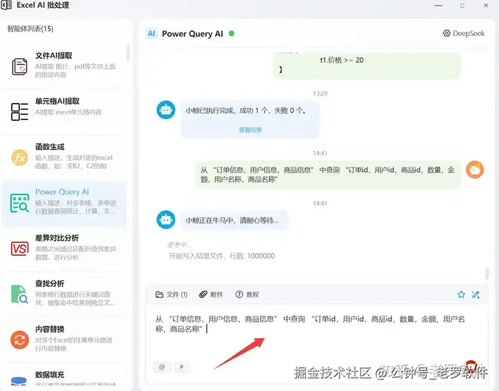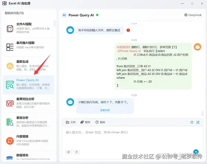 把sql语句用 SQL执行【】 包装起来, 然后发给大模型。等待处理结束。