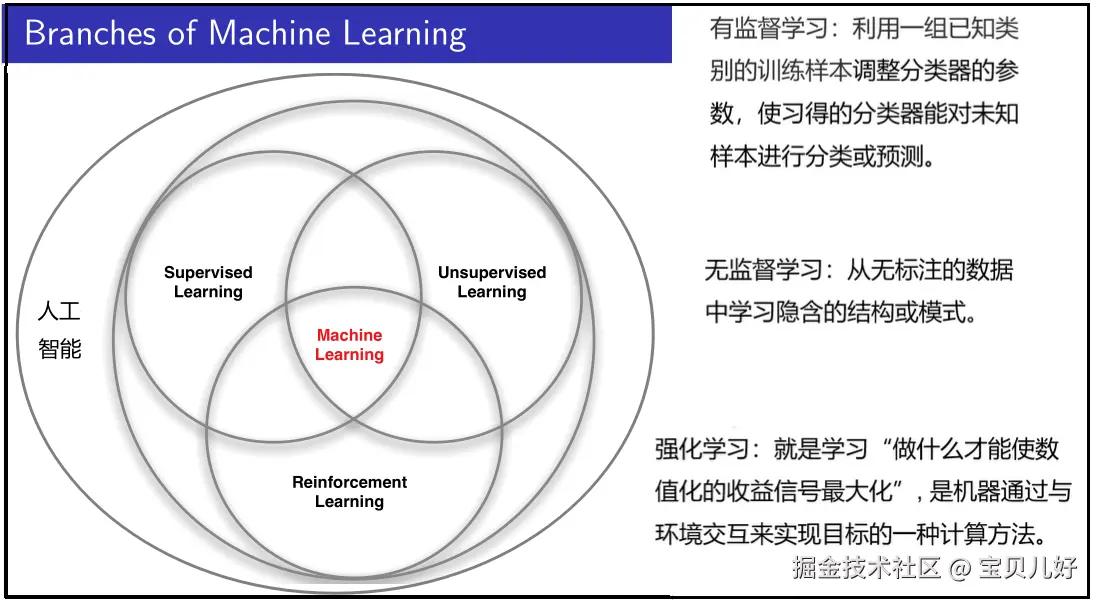 首先是人工智能包含机器学习,机器学习又分三种范式:监督学习、无监督学习、强化学习。