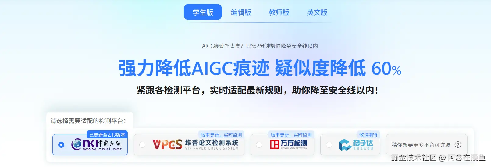 降重鸟: 每天10次免费检测次数。