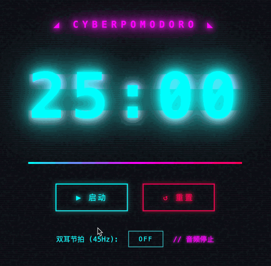 刚好我有个 idea 想试试,做一个 赛博朋克风格的番茄钟。
