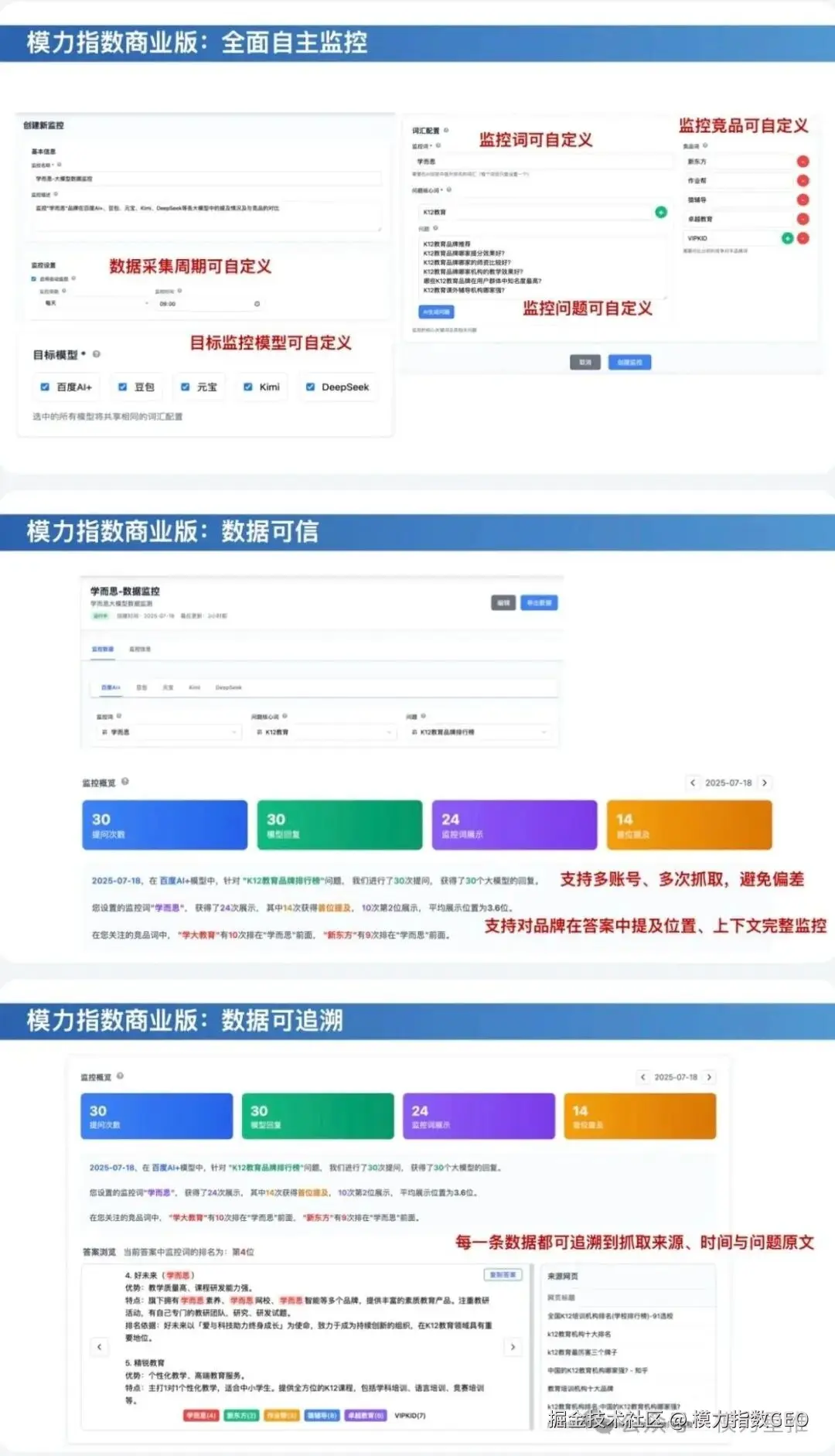 搭配专属GEO优化服务“模力星推”,还能实现从“发现问题”到“解决问题”的完整闭环——提及优化(从无到有、从后到前)、认知优化(强化正面、纠正错误)、推荐优化(提升优先级),让你的GEO优化少走弯路。