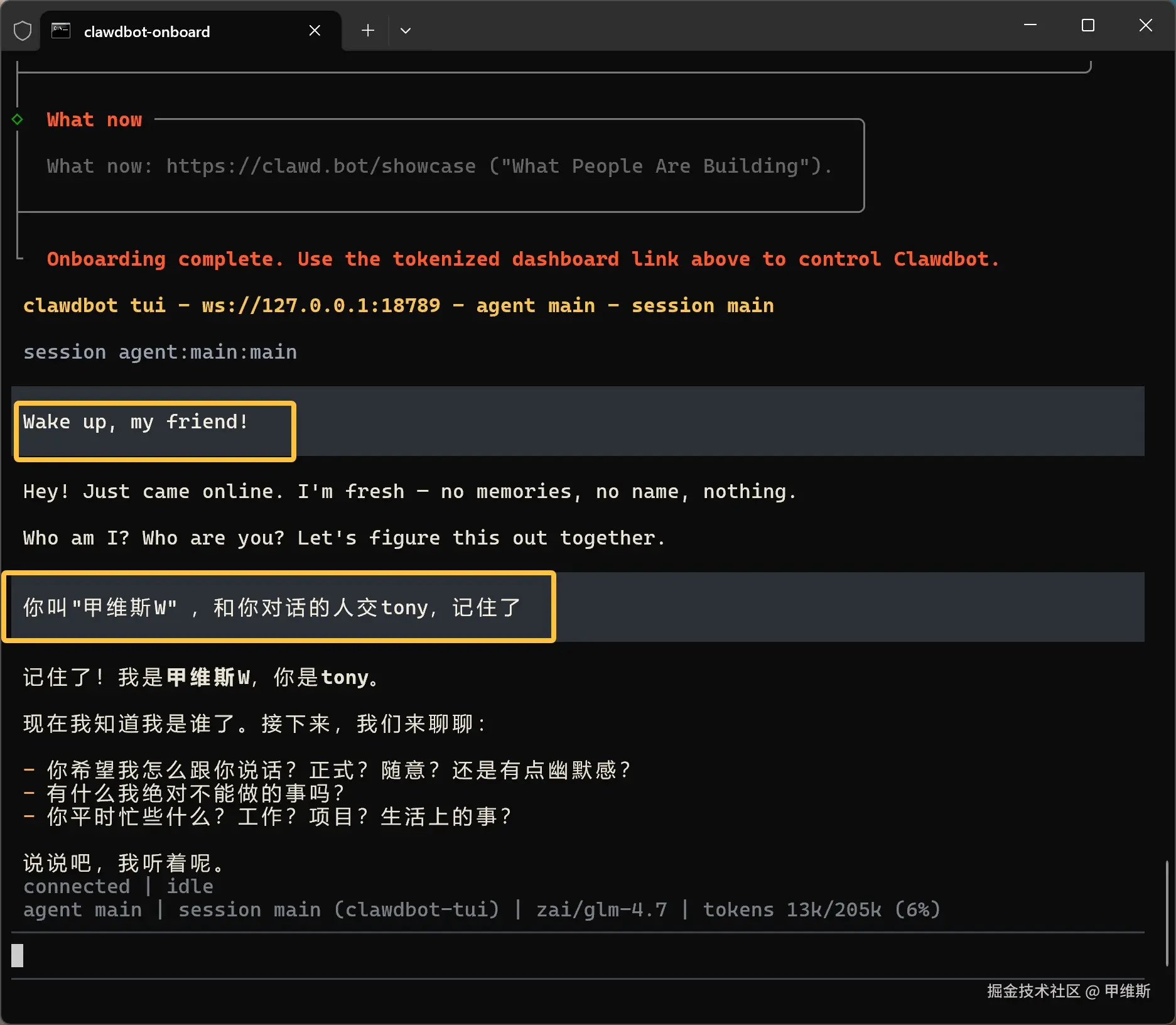 所以,我就尝试了一下这个阵容:Clawdbot + GLM4.7 + Windows。