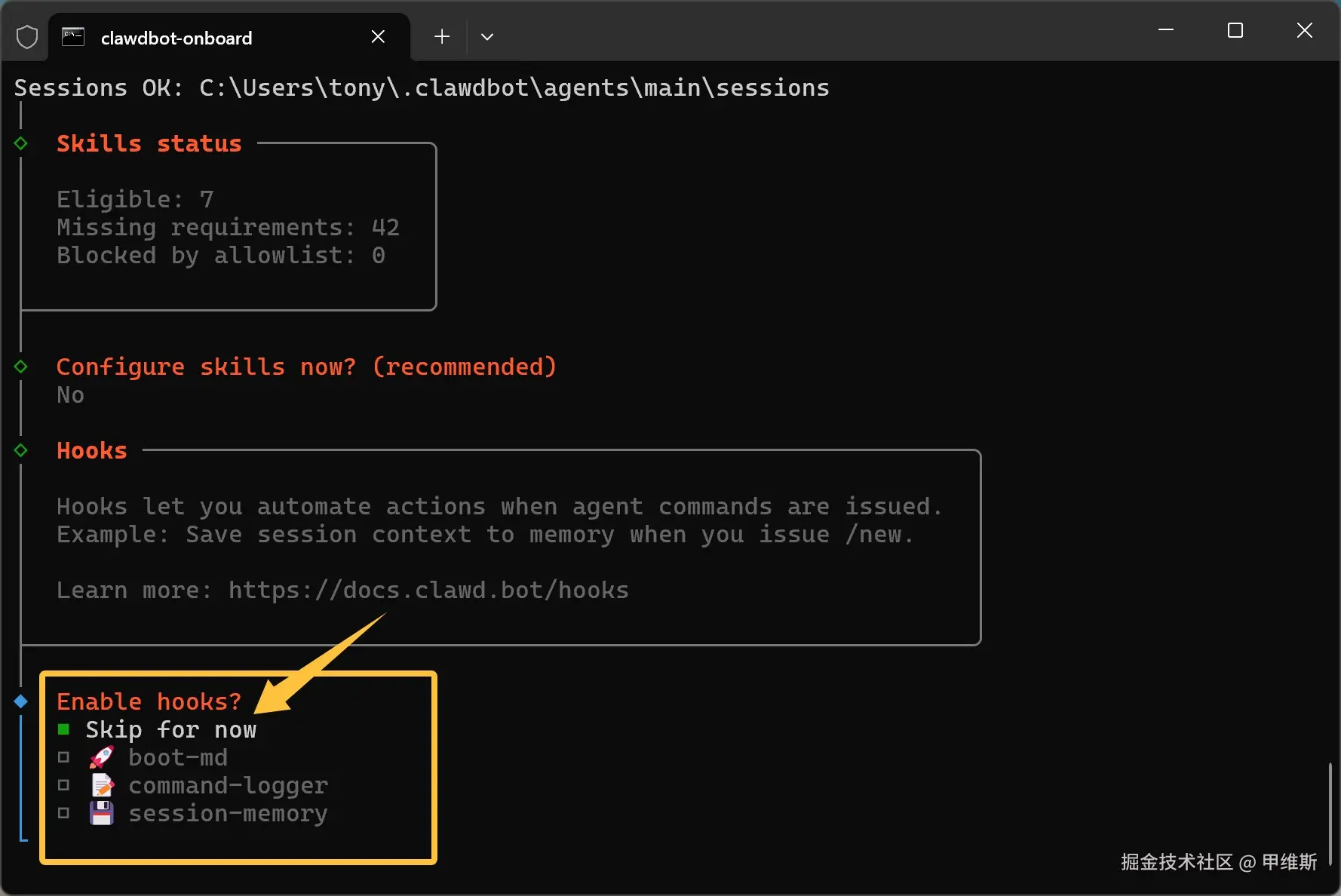 技能是很有用,但是为了减少复杂度,我们先不启用。直接选择 No,回车。