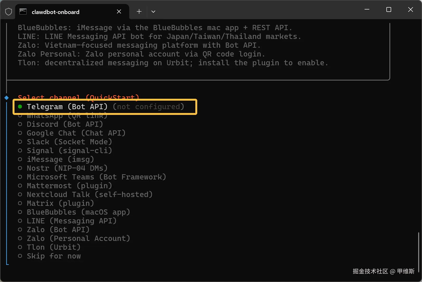 模型是 bot 的大脑,接下来就要给他装上“耳朵和嘴巴”了。所谓的通道其实就是交互工具,可以通过这个工具下达指令,接收反馈。