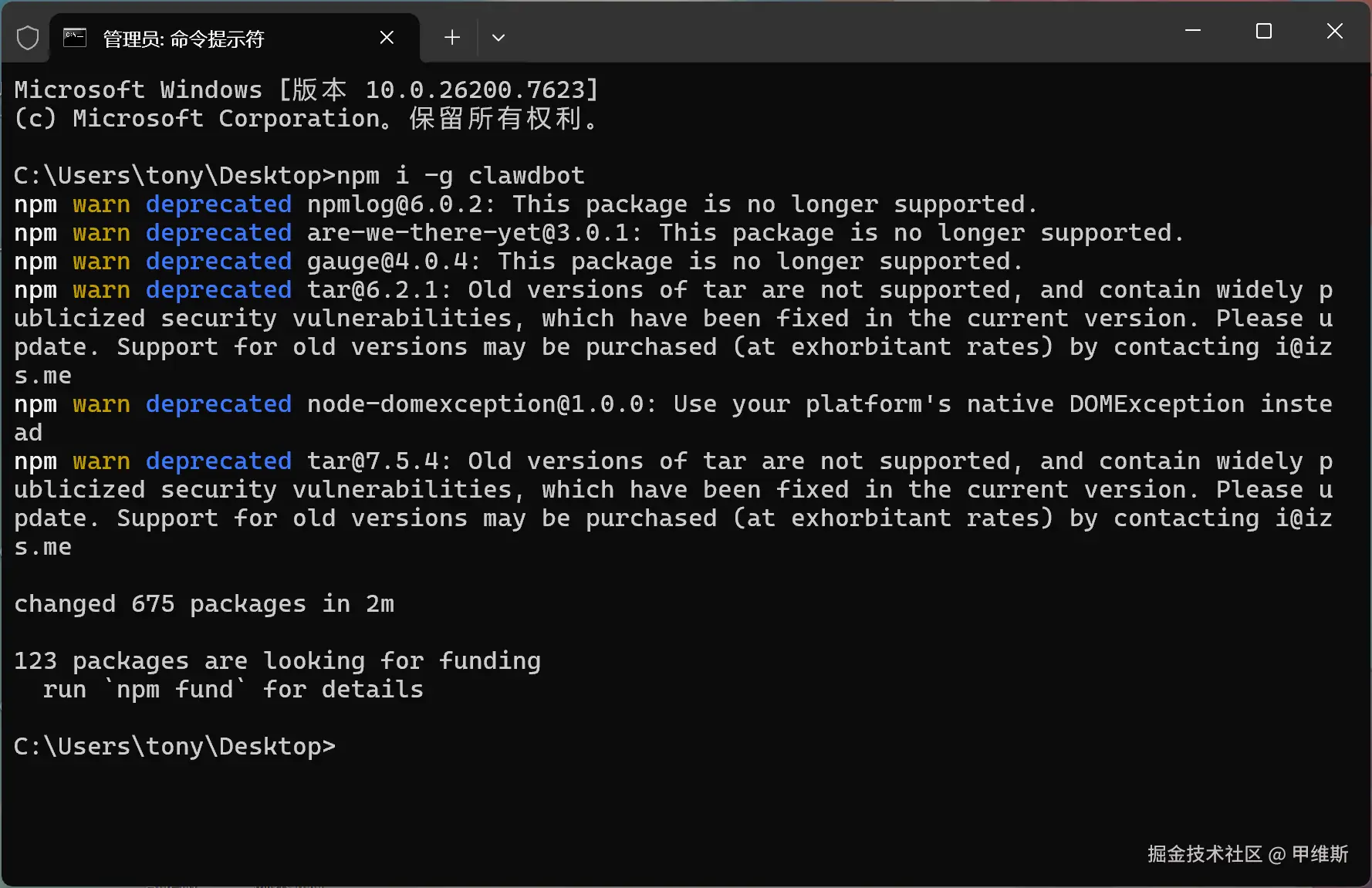 安装 Clawdbot 其实非常简单,只要一条命令: