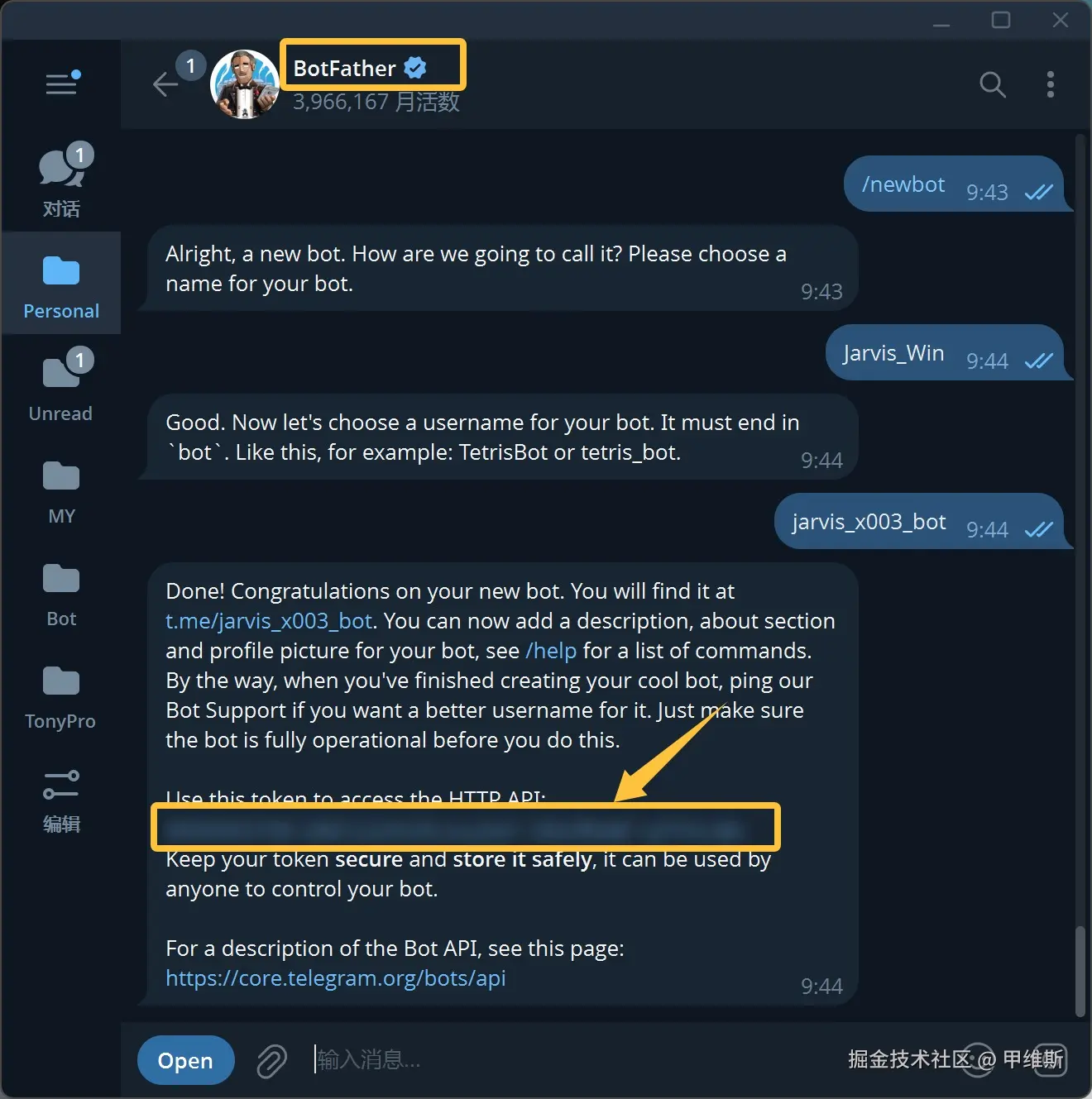 大概的过程就是,先 new 一个机器人,然后给他一个名字,给他一个唯一的 ID,最后就可以获得一个 token 了。