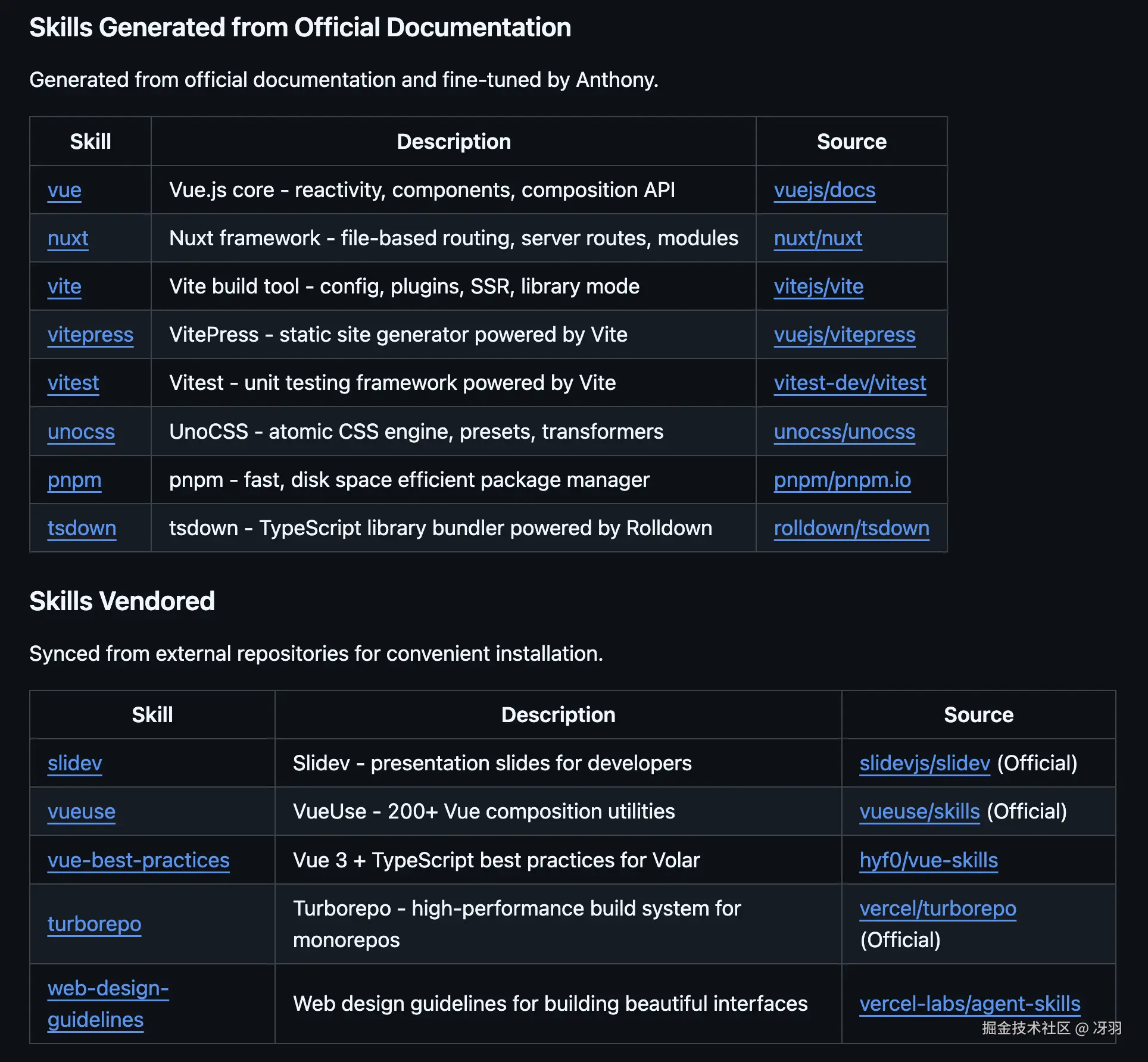 自从 Vercel 团队发布了 React 最佳实践,将十余年来积累的 React 和 Next.js 优化经验整合到了 skills 中,就有不少同学呼吁来个 Vue 版本的 skills。