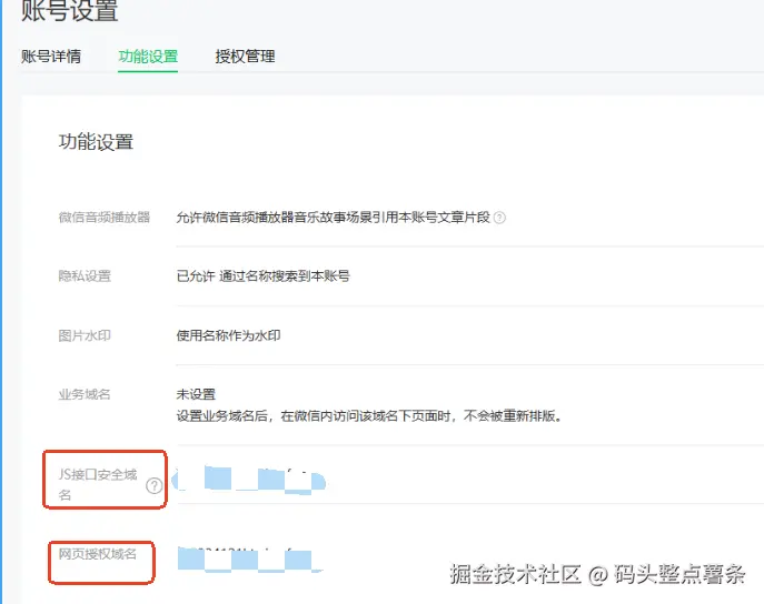 最近在对接微信服务号开发时,我遇到了一个典型的开发环境难题:微信平台要求配置 JS 接口安全域名、网页授权域名等(如图所示),这些接口必须通过备案域名访问,而公司暂未提供可用于开发测试的正式域名。面对这种情况,如果等待正式域名就位,整个开发进度将会严重受阻。