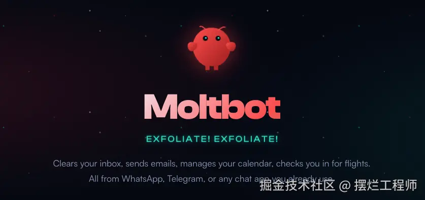 原先是小龙虾,现在的 Logo 是脱了壳的小龙虾,已命名为:Moltbot。
