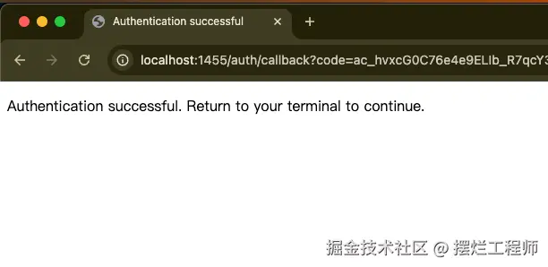 PS:如果你的终端没有自动回调获取到 Code 的话,你就把当前这条回调地址,localhost 开头的,全部复制,粘贴到终端就成功登录啦