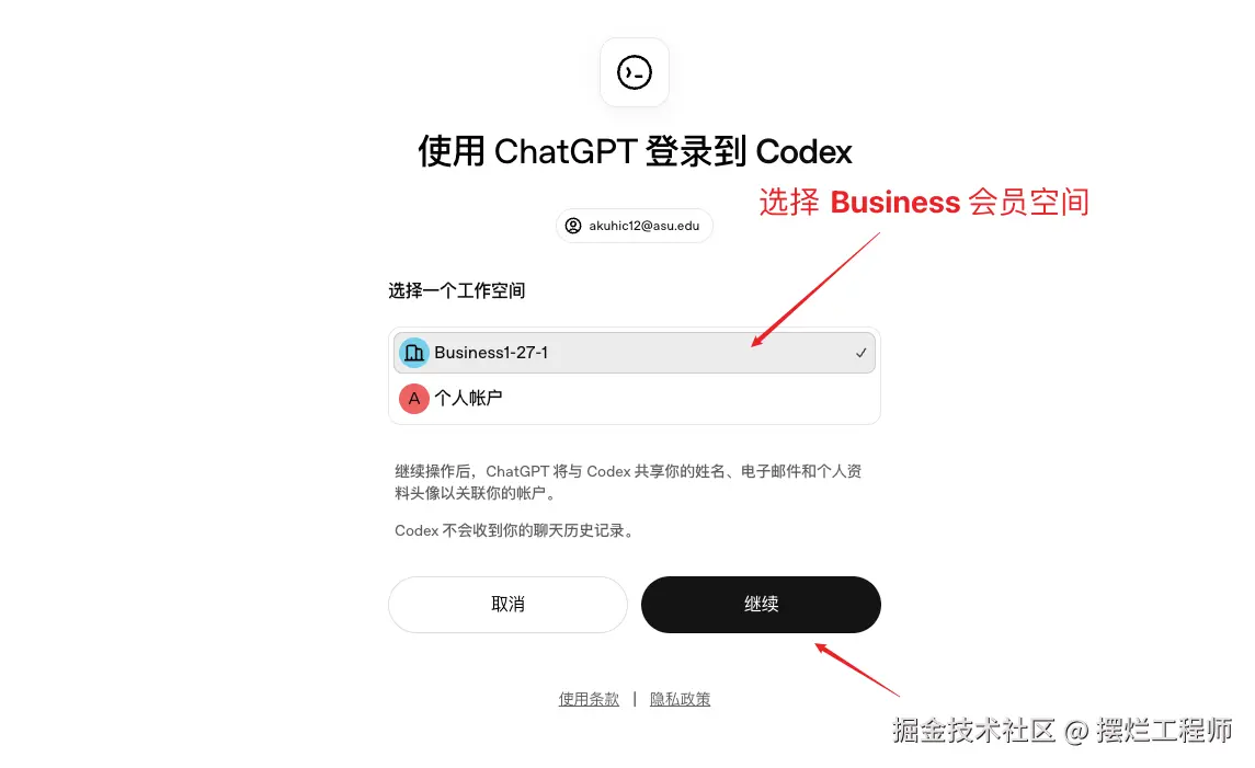 这边我是开通了 ChatGPT Businss 会员 和 Plus 会员,不过平时我会优先消耗 Business 会员的 额度,这里我就选择 Business 会员。