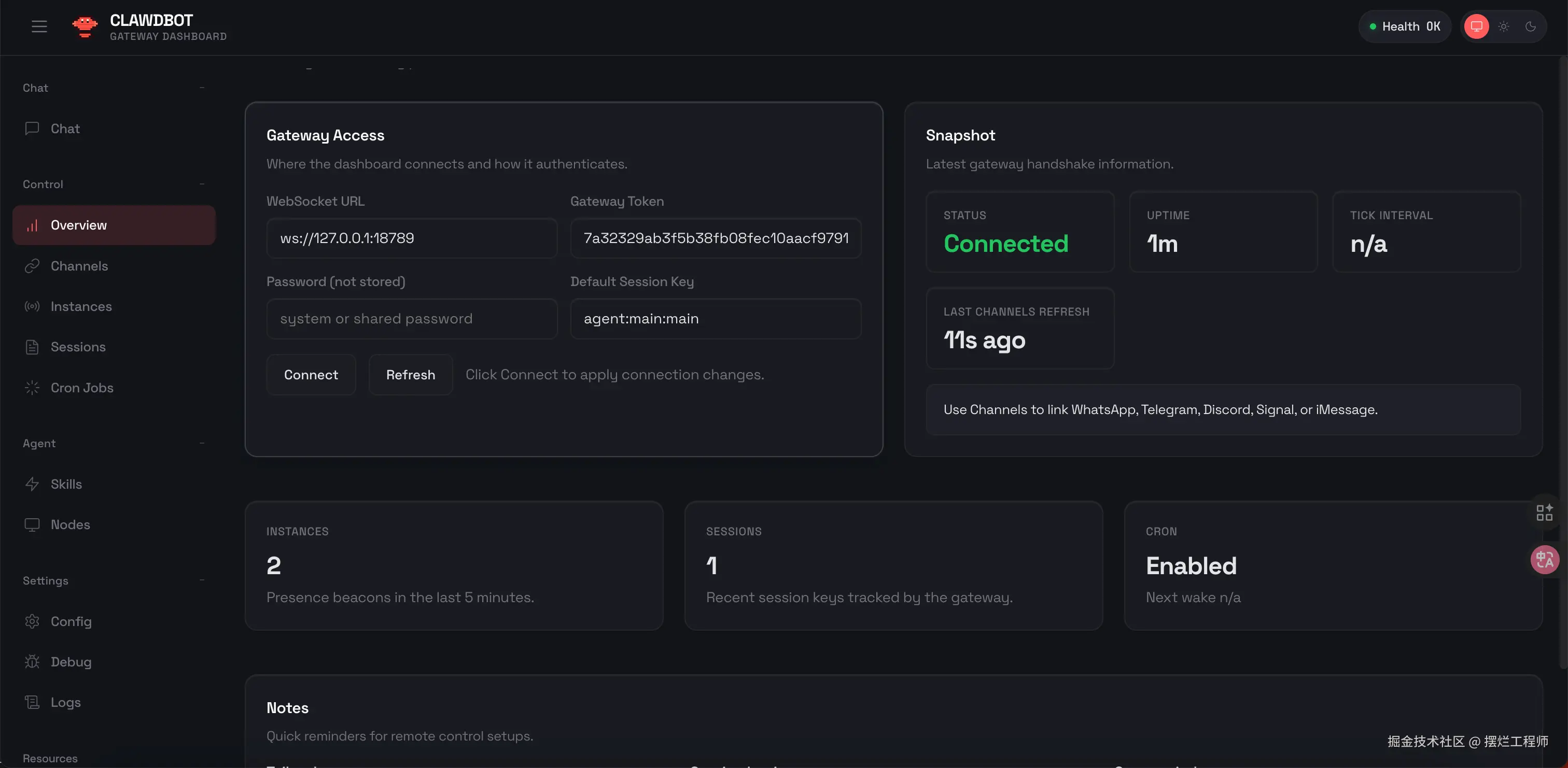 这是分配的默认端口:18789, 然后 Clawdbot 是支持 ChatGPT 和 Claude 的 OAuth 授权登录方式。