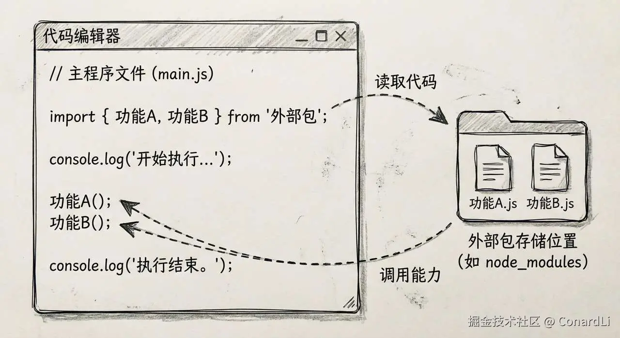 我们可能会通过 import xxx 来引入一些外部包,这些包存放在固定的位置(如 node_modules)。