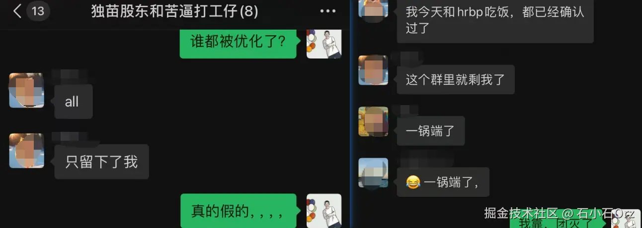 辞职不到一个月,突然得知曾经的小伙伴都被优化了,吃散伙饭的时候, 酒没喝几口,情绪却被灌得满满的。