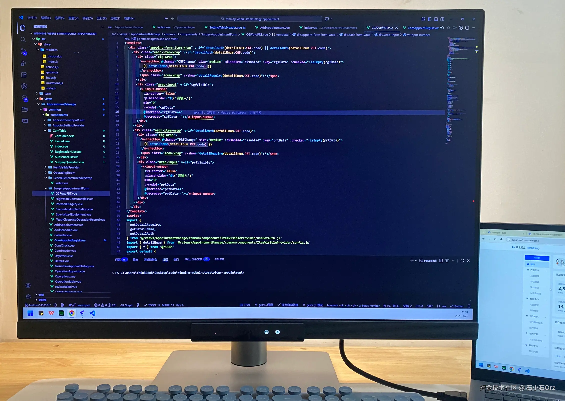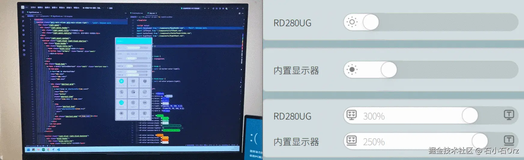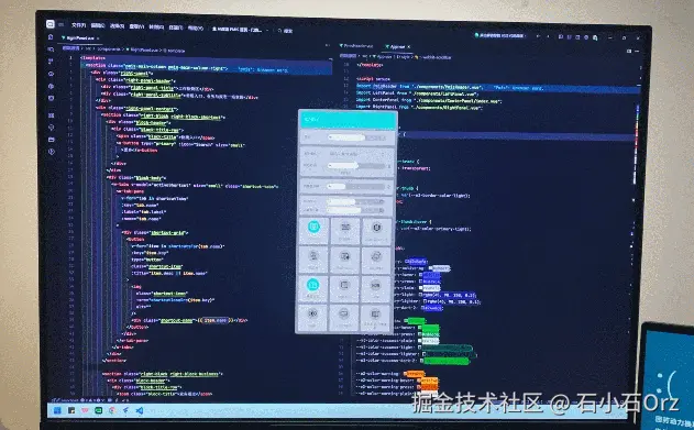 - 显示器作为主工作屏:IDE、主代码窗口、调试面板全部放在显示器上