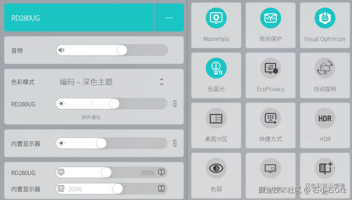这也是我选择明基 280UG 的一个核心原因。它的编程模式在写代码时体验非常不错,更关键的是,配合 Display Pilot2软件,可以直接用鼠标完成模式切换,整个过程非常顺滑。
