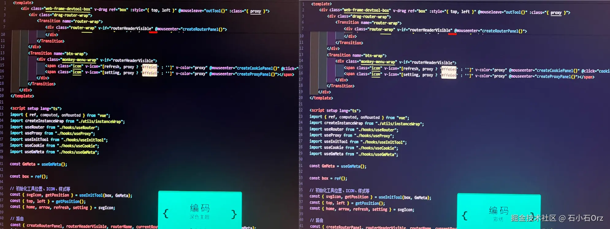 如上图所示,左侧的深色编程模式对比度更强,重点信息更加突出,适合快速定位代码结构;但在长时间工作下,较高的对比度也更容易引发眼睛疲劳。相比之下,右侧的彩纸模式更贴近真实纸张的观感,在长时间编码场景中显得尤为实用,能够有效降低视觉负担,提升持续工作的舒适度。