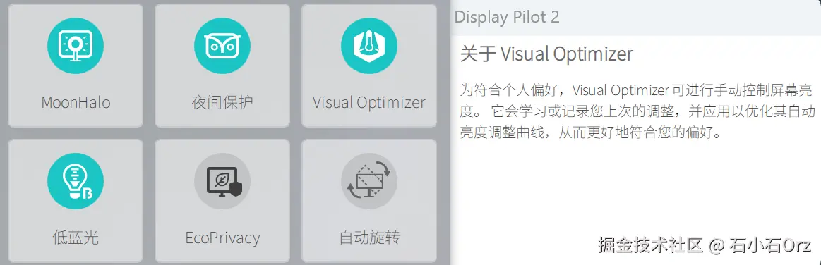 从个人体验来看,明基在护眼模式上的设计更有特色。它搭配 MoonHalo 背光灯,通过内置传感器实现夜间保护,再配合低蓝光模式和 Visual Optimizer,简直将护眼发挥到了极致。