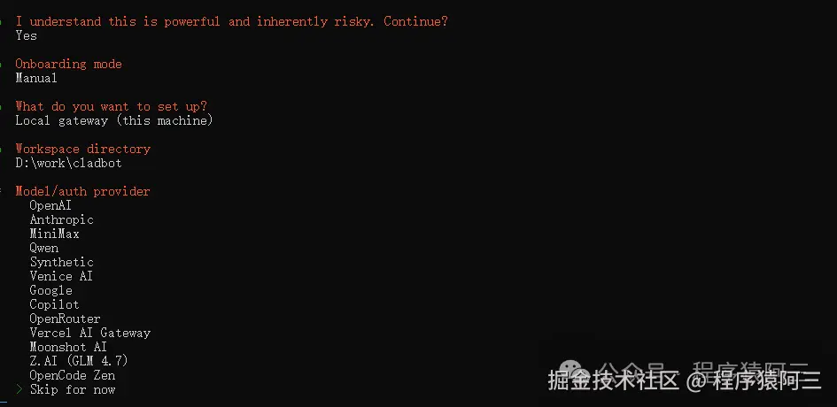 如果在初次安装中,有些插件或skill没有安装上,后续可以通过一些命令或直接修改配置文件方式进行变更。如配置新的渠道: