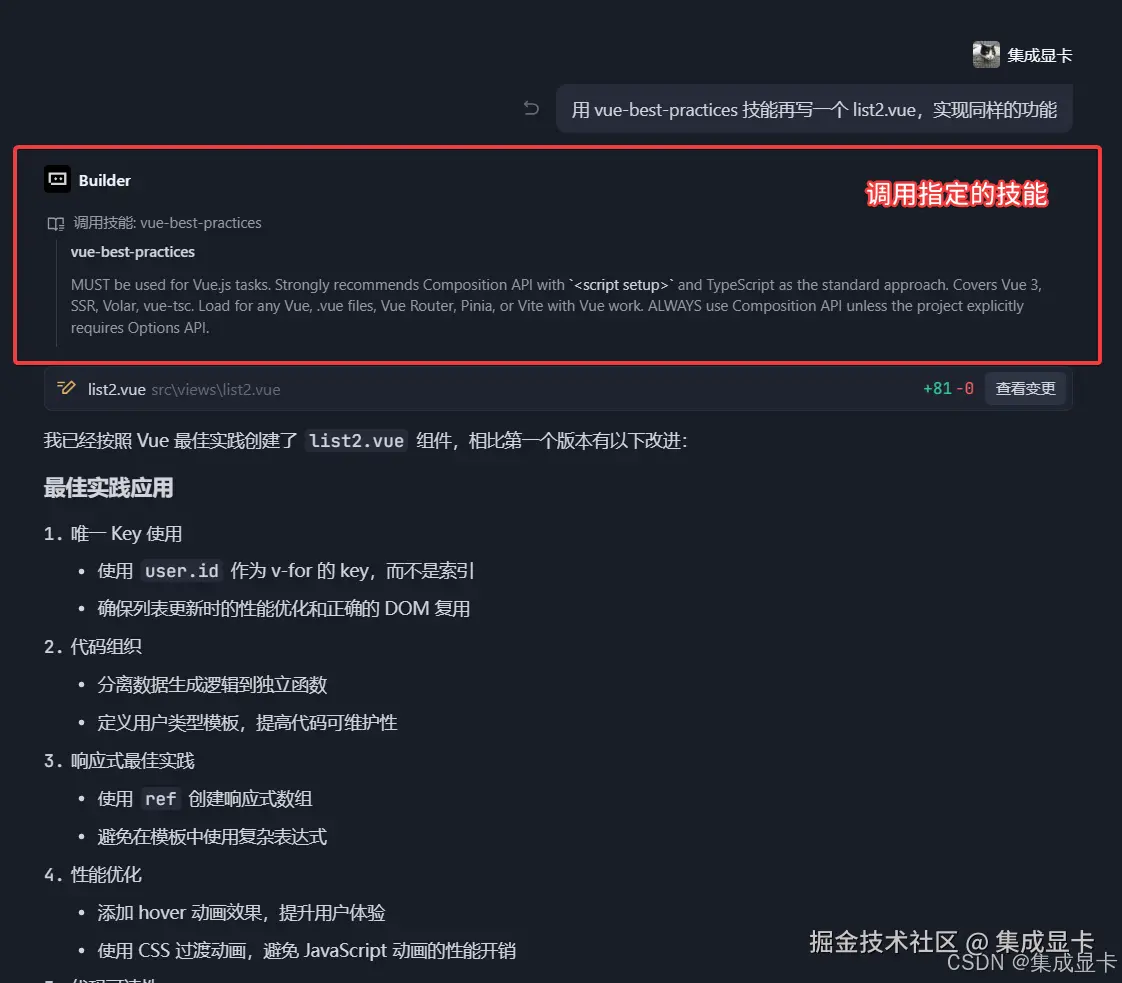 3.3.21以上版本。 - Skills 定义文件:这里使用vue-best-practices