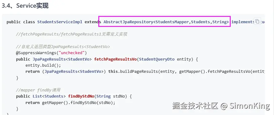 官方说明里面继承的是AbstractJpaRepository,使用起来有点小问题,会导致getMapper为空的异常。使用时需要继承JpaServiceImpl