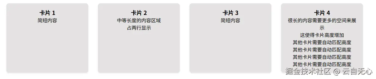 • 卡片内容高度不一致时,自动保持高度一致