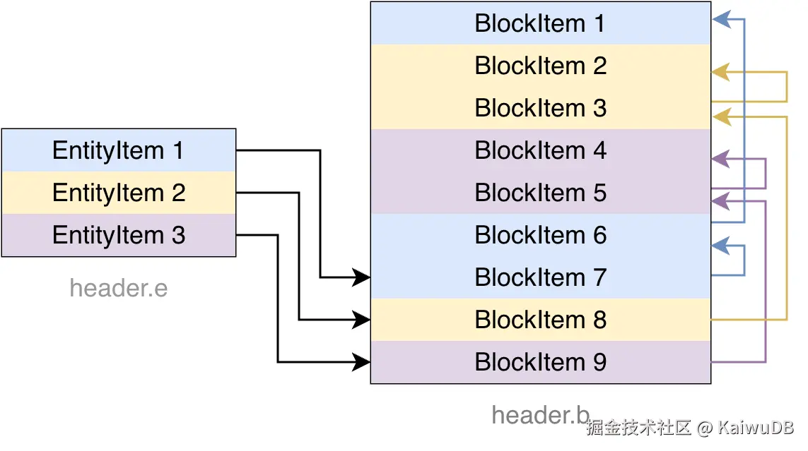 header.b:包含两部分关键信息:一是各 Block 的部分聚合信息(支持查询时快速过滤);二是设备 ID、该设备上一个写入 Block 的 BlockID 及对应文件偏移,整体呈现类似链表的结构,便于追溯数据写入顺序。