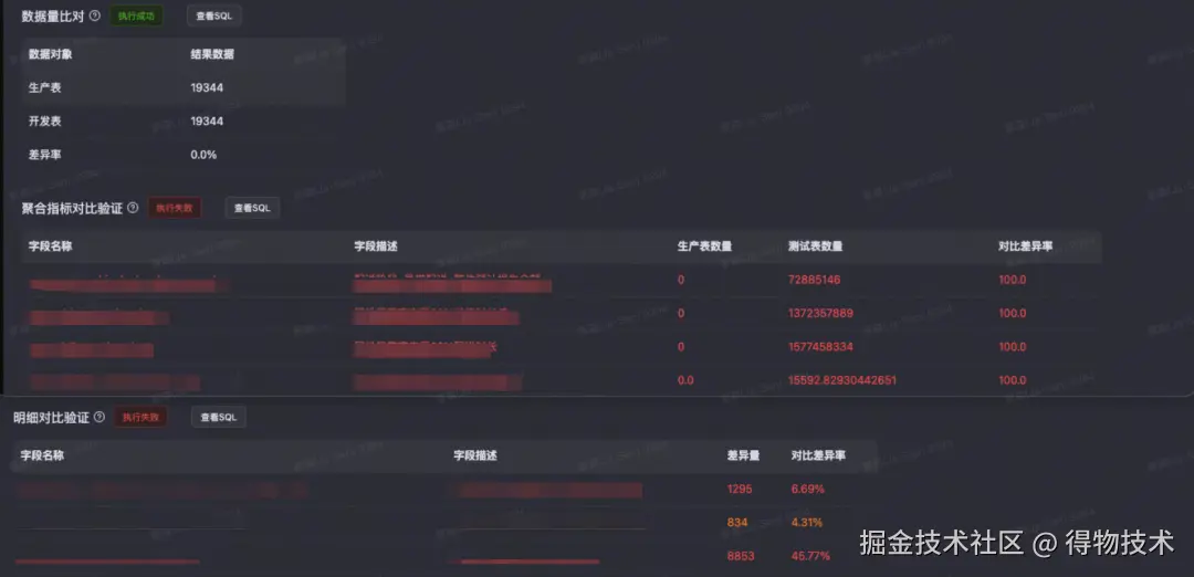 描述:针对生产表和测试表进行数据比对,比对场景:数据量对比、聚合指标对比、明细对比。