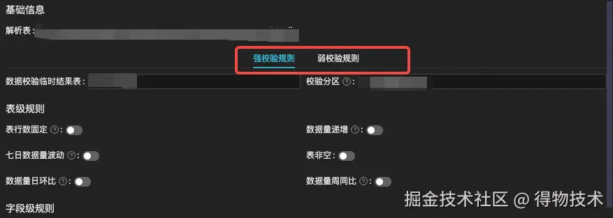 DQC强规则和弱规则的配置方式完全一致,通过Tab的切换,可以完成强弱规则的配置。