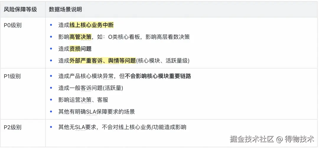 根据业务用途梳理消费端内容,根据风险高低定义风险等级P0、P1、P2,从末节点自动倒推追溯上游全链路,并全部打上风险等级P0、P1、P2标识,以相同的生产规范标准要求上下游各方协同保障。