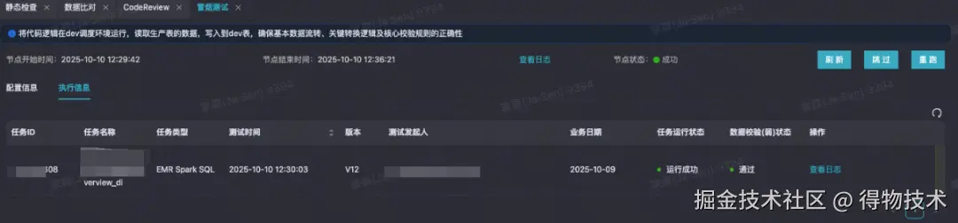 在数仓测试环境下,完成任务冒烟测试执行,执行内容包含:ETL任务、DQC规则。