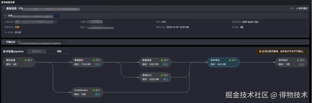 数仓任务发布流水线管控100%覆盖,任务发布效率提升60%。