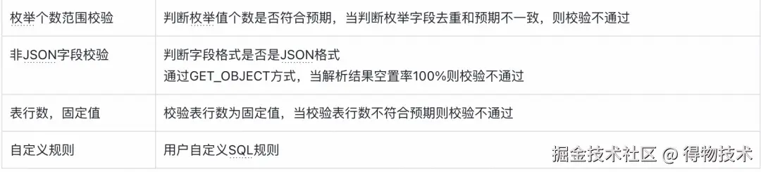 检测规则:任务依赖、建表规范、编码规范、集成规范、DQC规范等。