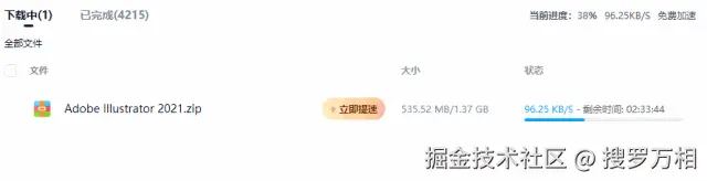 有个奇怪得现象,此可以看到下载速度还是不到100kb/s,但是文件大小接近2MB/s增加,说明下载速度还是提起来了。