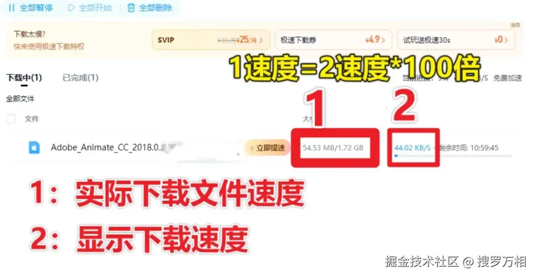 2、开始下载某度网盘文件之前,务必将速率调整为1倍。